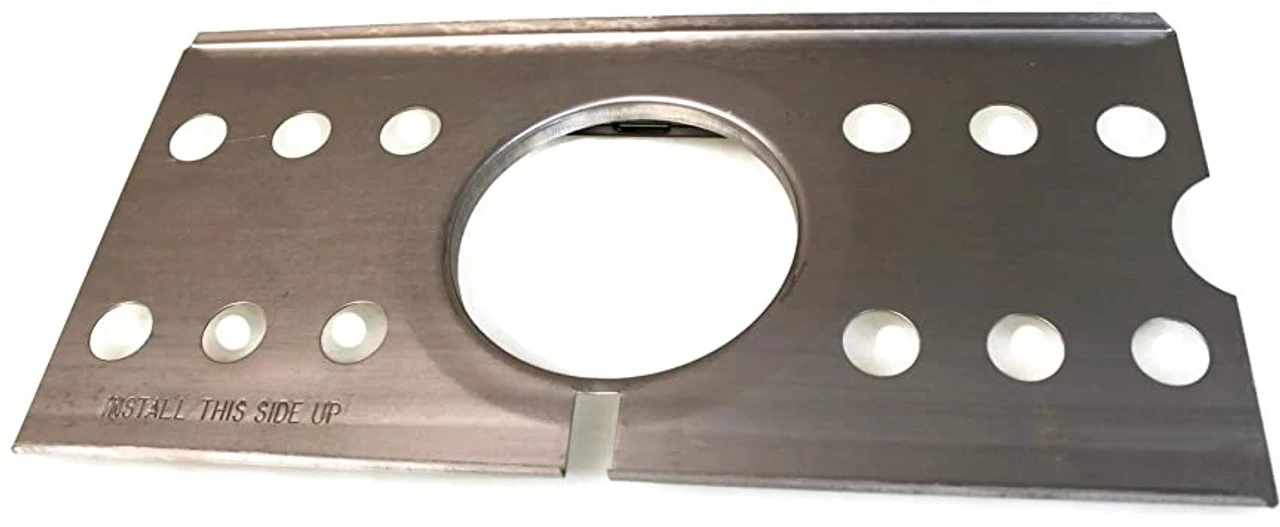 Broilmaster Stainless Steel Heat Shield / Wind Deflector.The item is 16″ (16.75) x 8 inches with a 5-6 inch diameter hole in the center, and a few smaller holes in other places.Broilmaster says this unit fits both #3 and #4 size grill heads.74720 is Broilmaster #DPP7SS (also B101045).(Your manual may have called this a radiation shield but the name was changed to be more acceptable.)