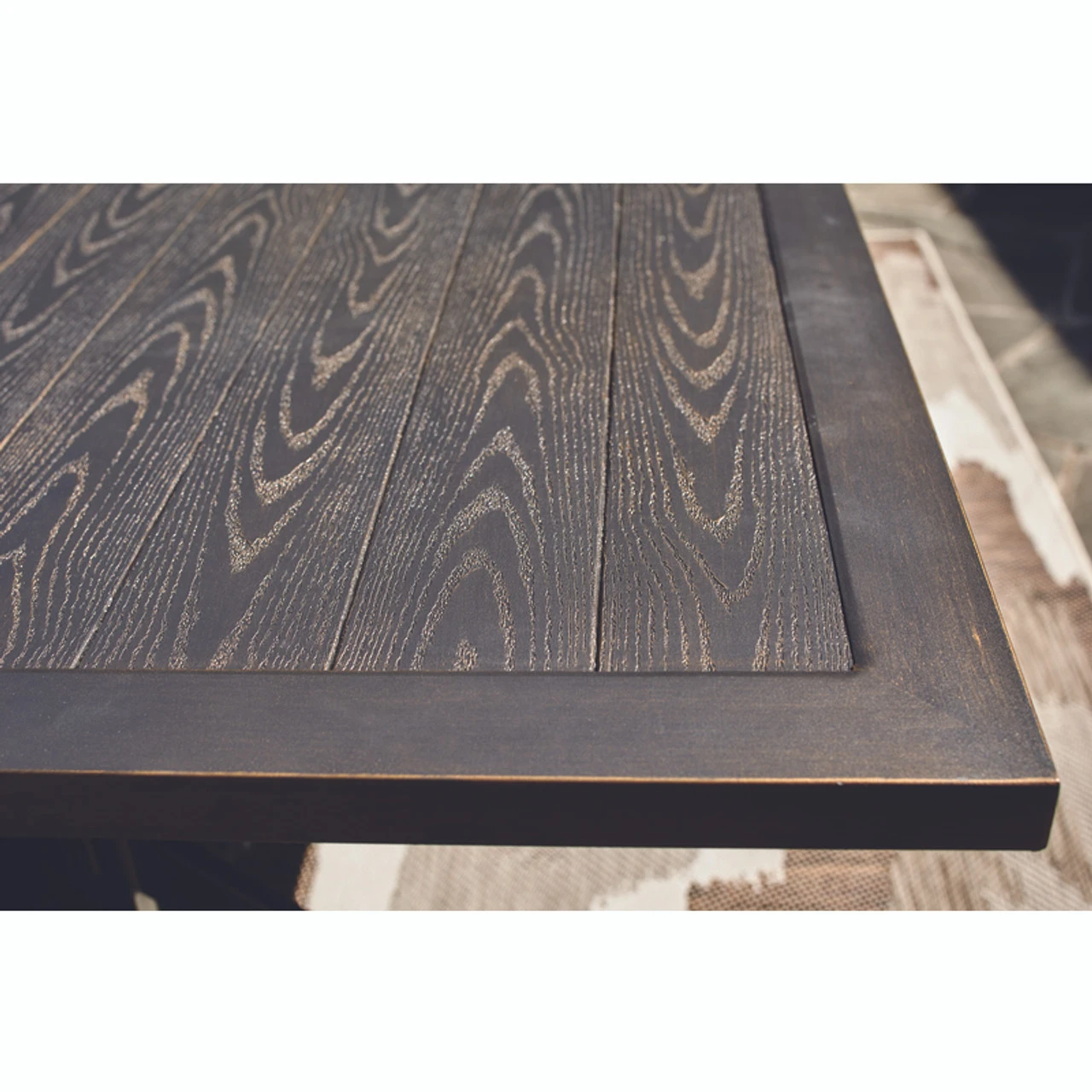 This elegant and durable set is sure to transform your backyard. Rochdale features 4 large armless wicker chairs, 2 oversized wicker captain chairs and a farmhouse-style aluminum dining table with an engraved wood grain finish. Chairs include olefin cushions and lumbar pillows. Dining set pairs flawlessly with the Rochdale deep seating collection.