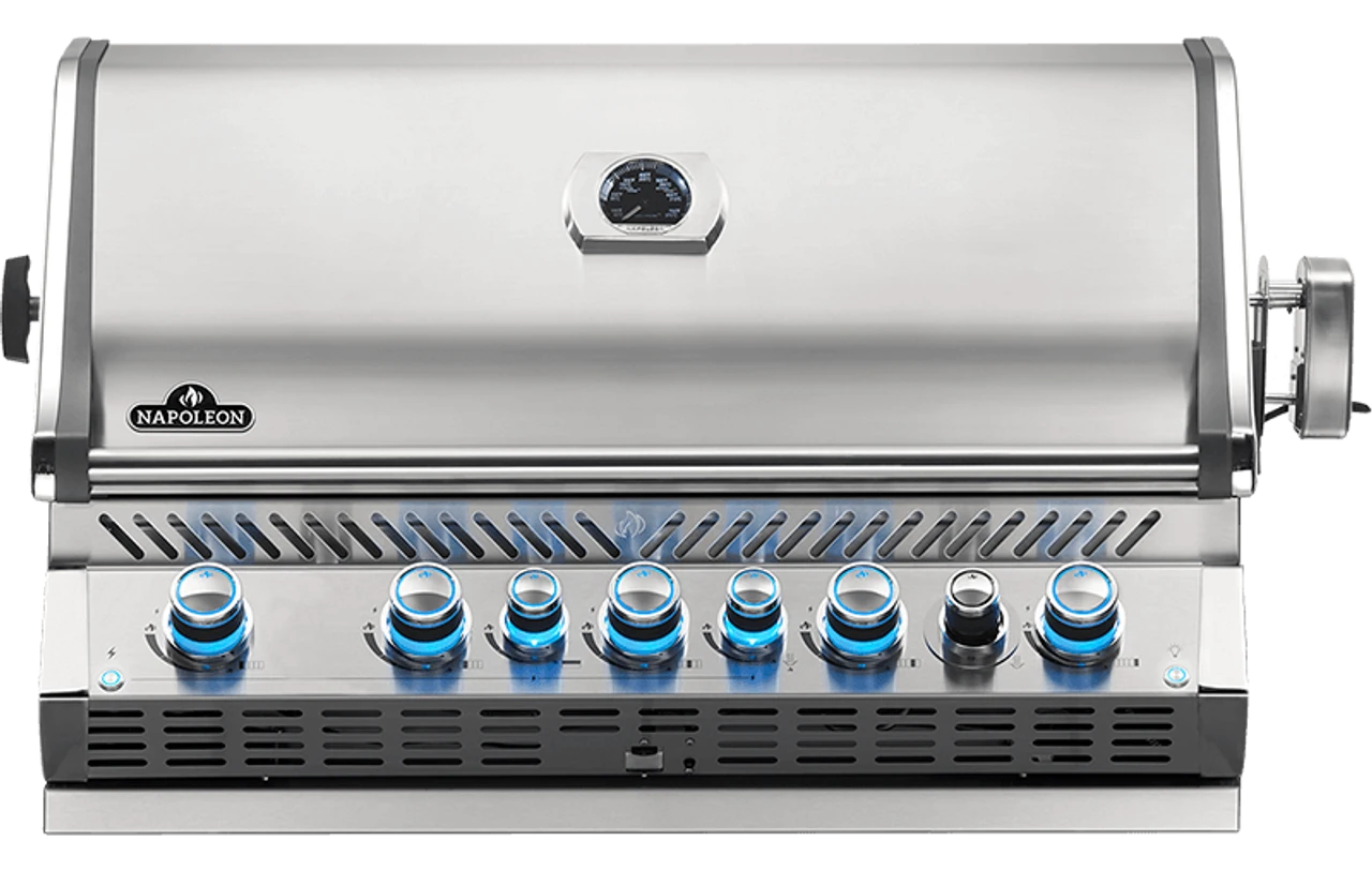 A gourmet outdoor kitchen deserves to have a big and beautiful grill. The Built-in Prestige PRO™ 665 Propane Gas Grill with Infrared Rear Burner features seven burners of grilling bliss. Durable stainless steel features chrome accents for luxury and durability. Grill after dark with LED Spectrum NIGHT LIGHT™ Control Knobs, with near limitless color possibilities. Additionally the SafetyGlow feature turns the lights red when a burner is in use. Know which burners are lit so you can get the perfect sear, or ideal indirect grilling temperature. The oven-like performance of this grill allows you to bake and roast with ease, sear over high heat, and the rear burner makes delicious rotisserie meals in no time. You’ll know it’s a Napoleon with the iconic WAVE™ cooking grids and proximity lighting. . The integrated smoker tube and dedicated burner can even turn this grill into a smoker, while interior lights let you grill well past dark. Perfect and professional, the PRO™ 665 Built-in Grill Head is the perfect grill for your outdoor kitchen.