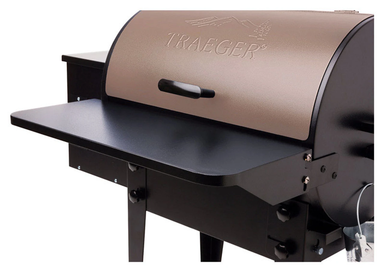 The folding front shelf makes a great sidekick for 20 Series grills. While your Traeger smokes meat to juicy perfection, the front shelf acts as a prep station for slicing veggies to top your burgers, keep your oven mitts at the ready, even hold your drink for easy access and folds down when you’re done.