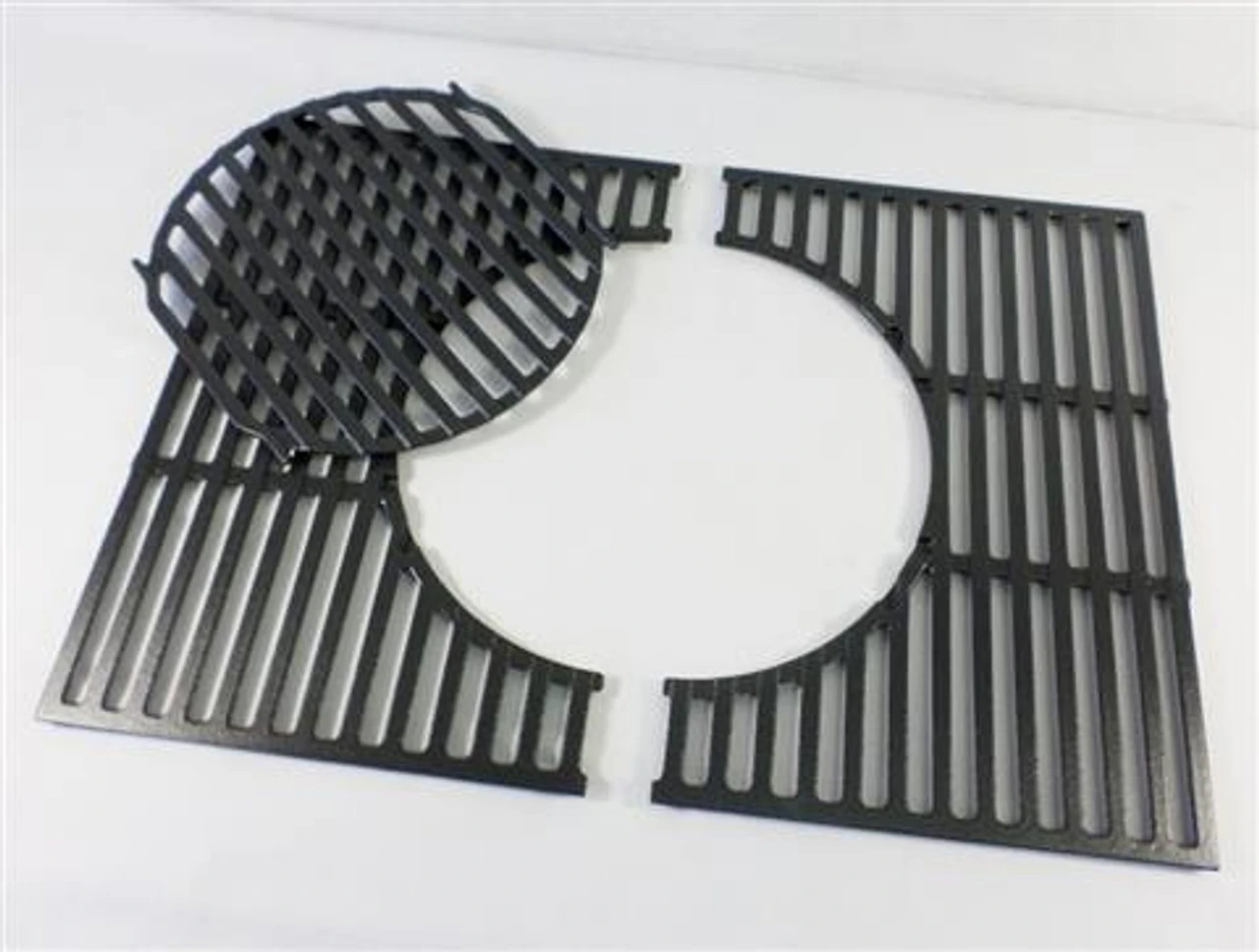 “Gourmet BBQ System” 3 piece matte finish, porcelain enameled cast iron cooking grate set. Overall dimensions are 17-1/2″ front to back X 23-3/4″ wide. Fits Spirit and Spirit II 300 Series and Genesis 1000-5000, Silver B/C and Gold Platinum, This 3 piece set includes one left side, one right side and one 12″ diameter round removable center piece. Use all 3 pieces together for traditional grilling or remove the center piece to utilize any of Weber “Gourmet BBQ System” accessory components. IMPORTANT: Please Verify Dimensions.